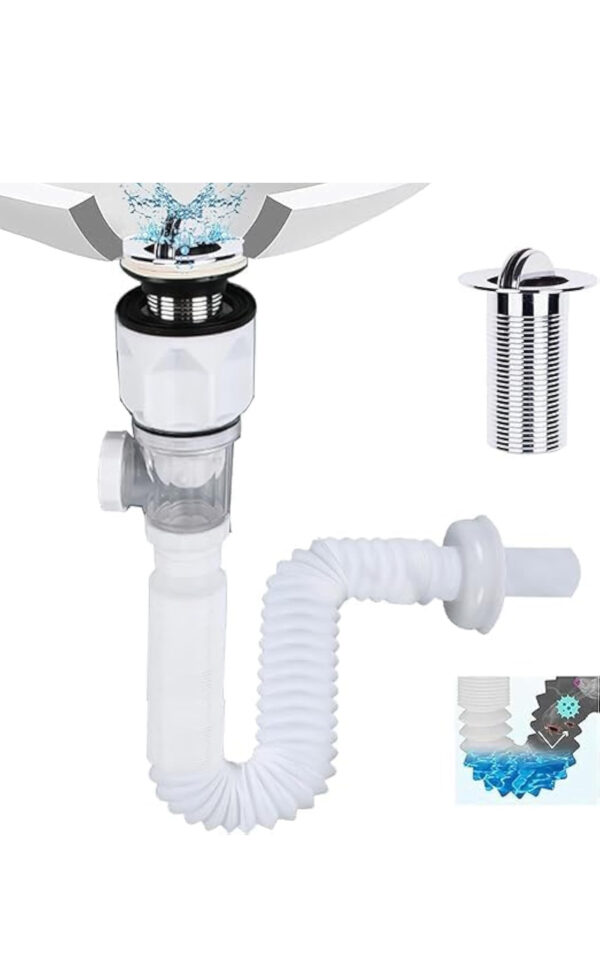 - ✅【 Anti clogging and odor prevention design 】: The sink trap kit is designed with a pop-up anti clogging plug that can collect hair and prevent clogging of the drainage pipe. It also includes ingredients to prevent water flow back, prevent odors and backflow.