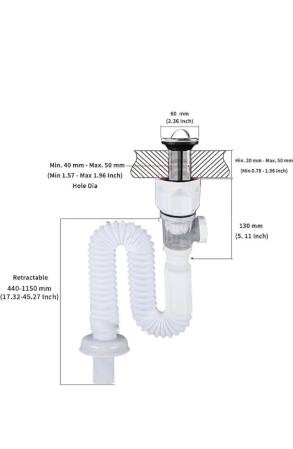 - ✅【Ten minute quick installation, no tools required 】: Flexible and expandable flexible drainage pipes are easy to install without the need for any tools. It can be perfectly installed on wall drainage pipes without the need for cutting. More convenient to design than traditional multi segment P-shaped traps.