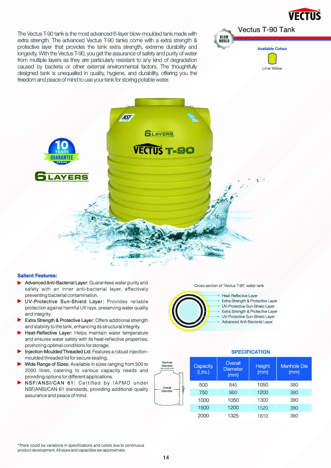 • Wide Range of Sizes: Available in sizes ranging from 500 to 2000 litres, catering to various capacity needs and providing options for different applications.